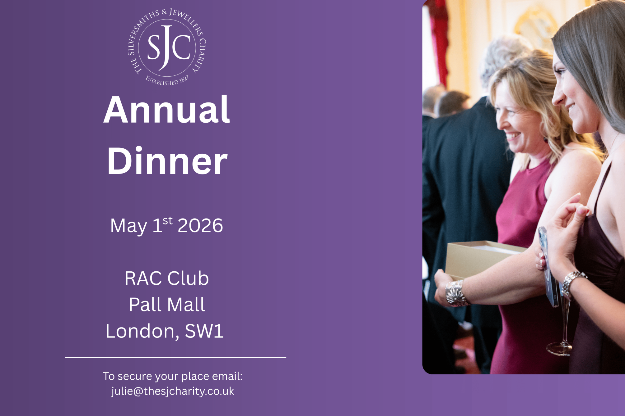 Most importantly, by attending this special evening, you will be helping to support those in need within the silversmithing and jewellery industries.